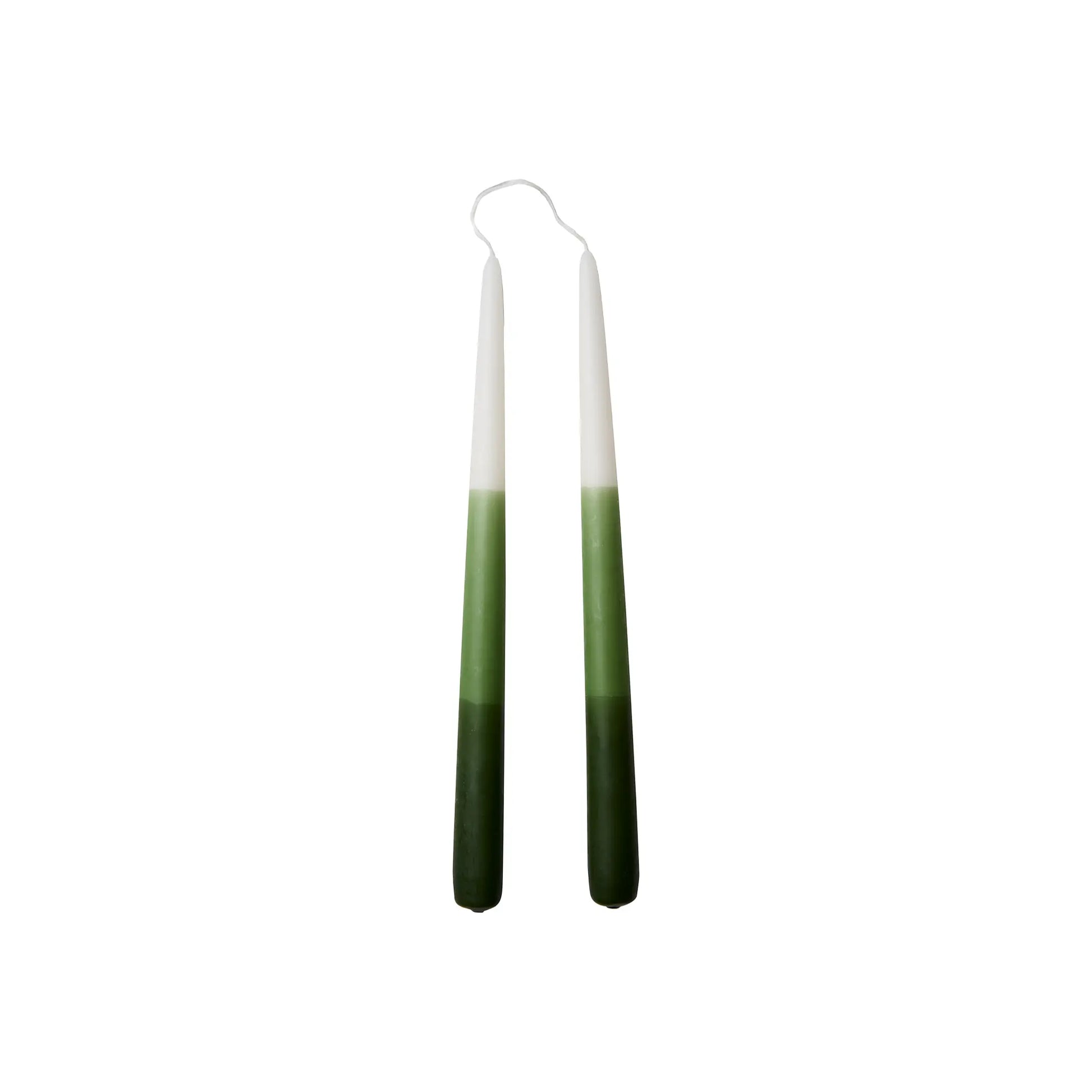 COLOURED TAPER kronljus mörkgrön är ett elegant paraffinljus med vacker färgövergång från vitt till grönt som skapar ett modernt och levande uttryck. Perfekt som blickfång i dukningen eller som dekorativ detalj i hemmet. Brinntid ca 8 timmar, mått Ø2,2xH30 cm.