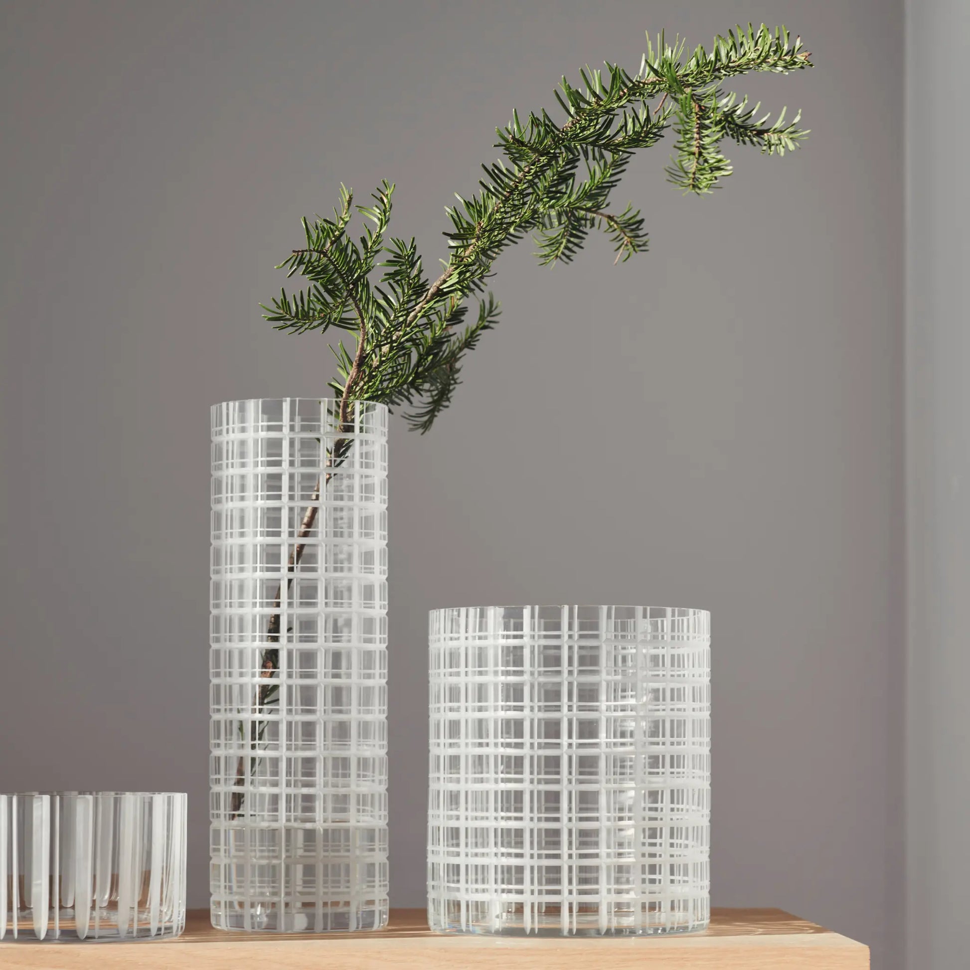 Cut In Number vas rutmönster 330 mm från Orrefors är en hög och elegant cylinderformad vas i kristallglas, formgiven av Ingegerd Råman. Det mattslipade rutmönstret lyfter fram glasets klara transparens och skapar ett harmoniskt spel mellan ljus och struktur. Vasen passar perfekt för längre snittblommor och blir ett stilrent blickfång i både moderna och klassiska miljöer. Ett uttryck för tidlös skandinavisk design med fokus på enkelhet och precision.