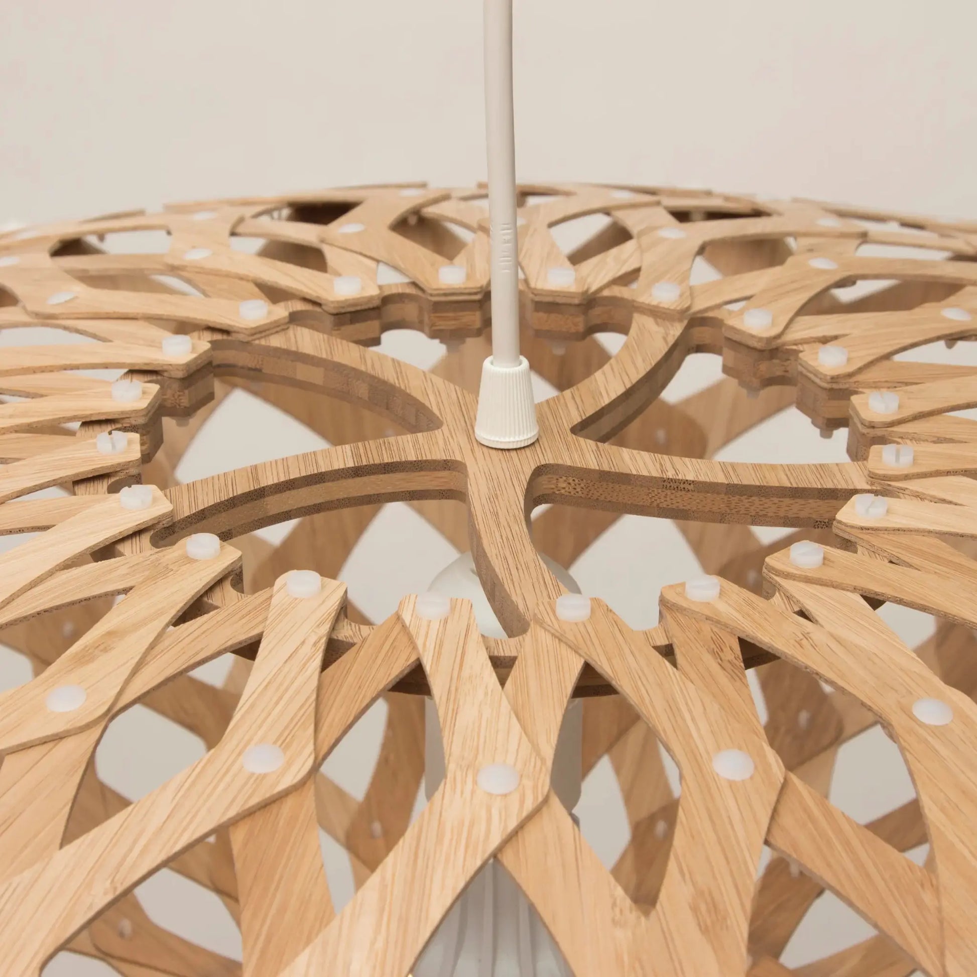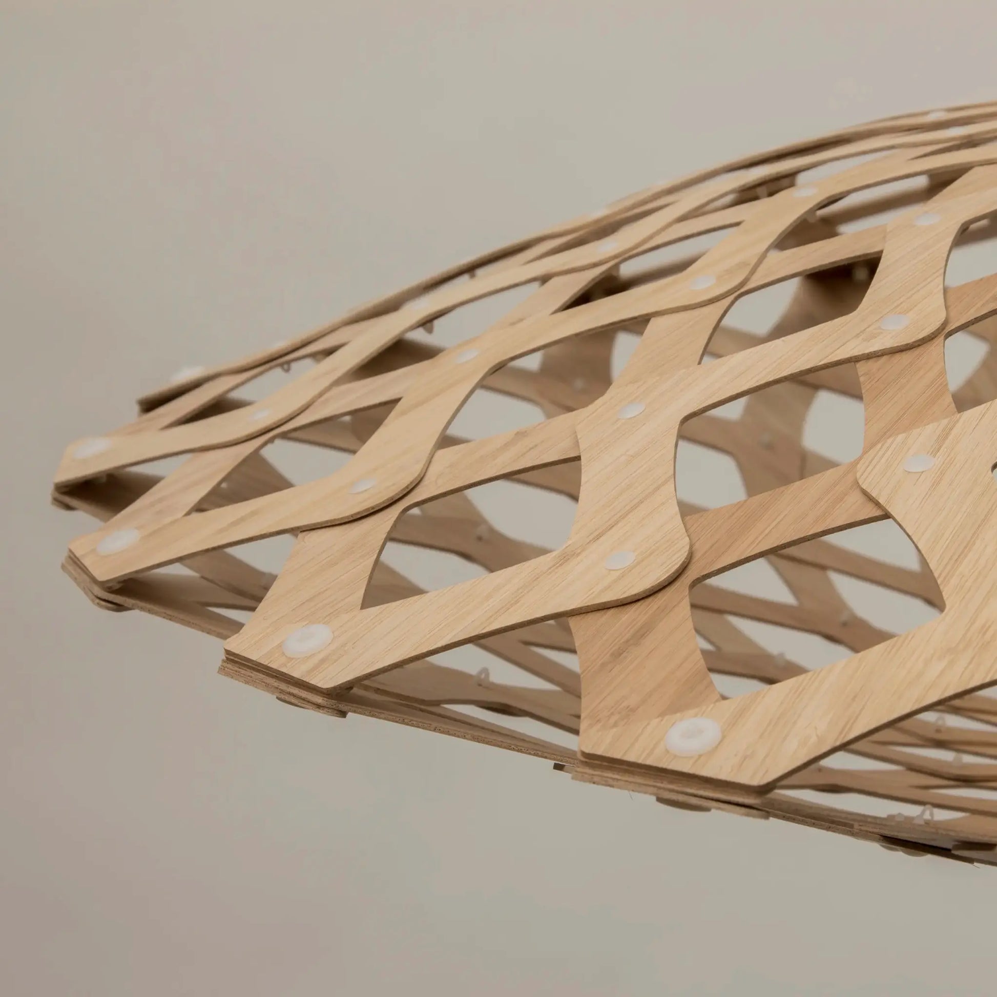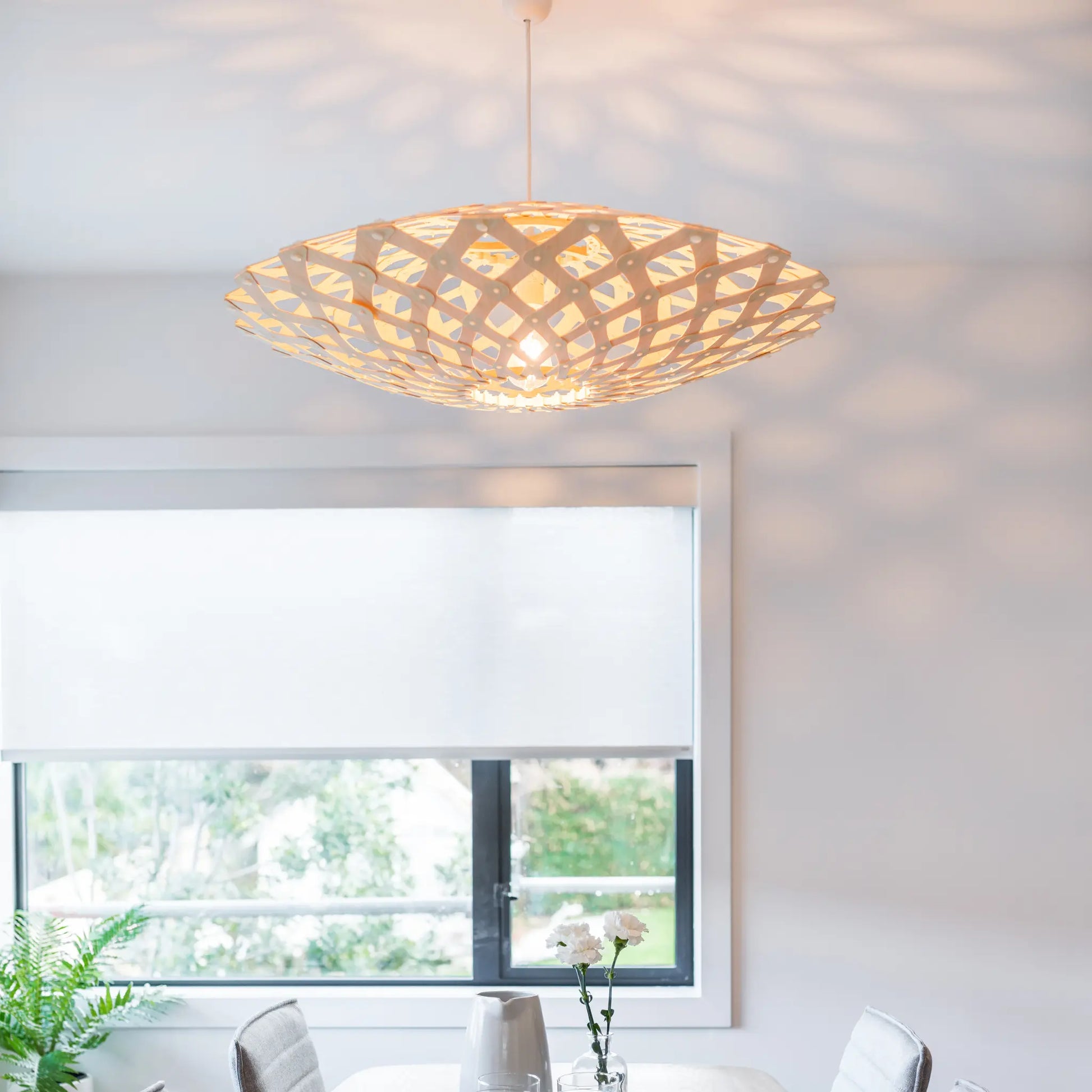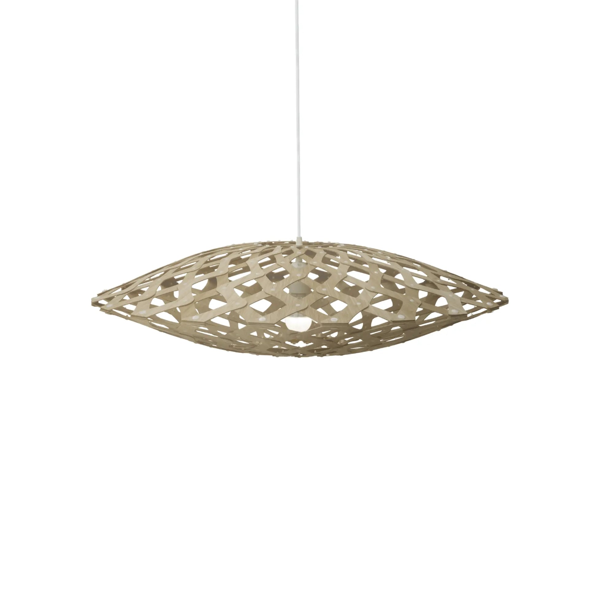 Kōura taklampa är en skulptural och uttrycksfull lampa formgiven av David Trubridge, inspirerad av traditionella flätade korgar samt den mjukt rundade formen hos den nyzeeländska sötvattensräkan kōura. Den organiska siluetten skapar ett levande spel mellan ljus och skugga som ger rummet ett varmt och harmoniskt uttryck. Lampans öppna mönster låter ljuset spridas mjukt genom formen och gör den till ett tydligt blickfång även när den är släckt. Kōura är tillverkad i bambuplywood och levereras utan ljuskälla. Lampan är avsedd för torra inomhusmiljöer och passar särskilt bra där man vill skapa ett konstnärligt och stämningsfullt uttryck. Levereras som ett platt paket med lampskärm, upphängning och instruktioner och måste monteras själv.