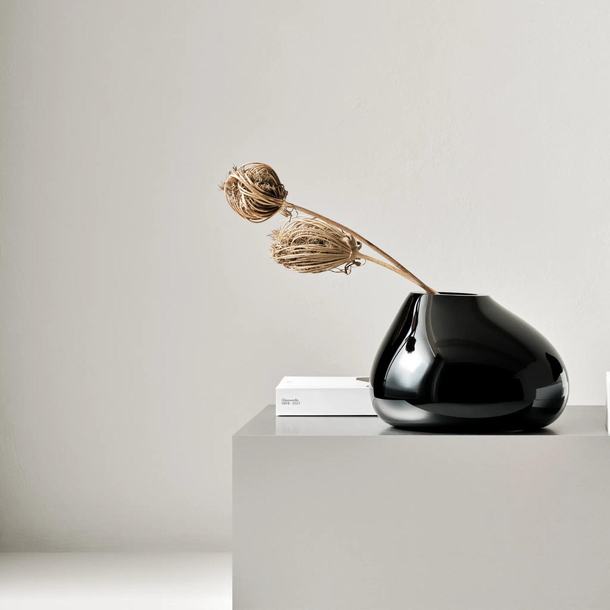 Ebon vas svart 240 mm från Orrefors är en munblåst glasvas tillverkad i Sverige, formgiven av Claesson Koivisto Rune. Den har en djup svart, opak yta som fångar och reflekterar ljuset på ett elegant sätt. Varje vas formas individuellt av skickliga glasblåsare, vilket gör varje exemplar unikt. Den mjuka, skulpturala formen och den glänsande ytan ger ett uttryck av både styrka och stillhet. Tillverkad i glas av hög kvalitet, handdisk rekommenderas, torka med mjuk trasa.