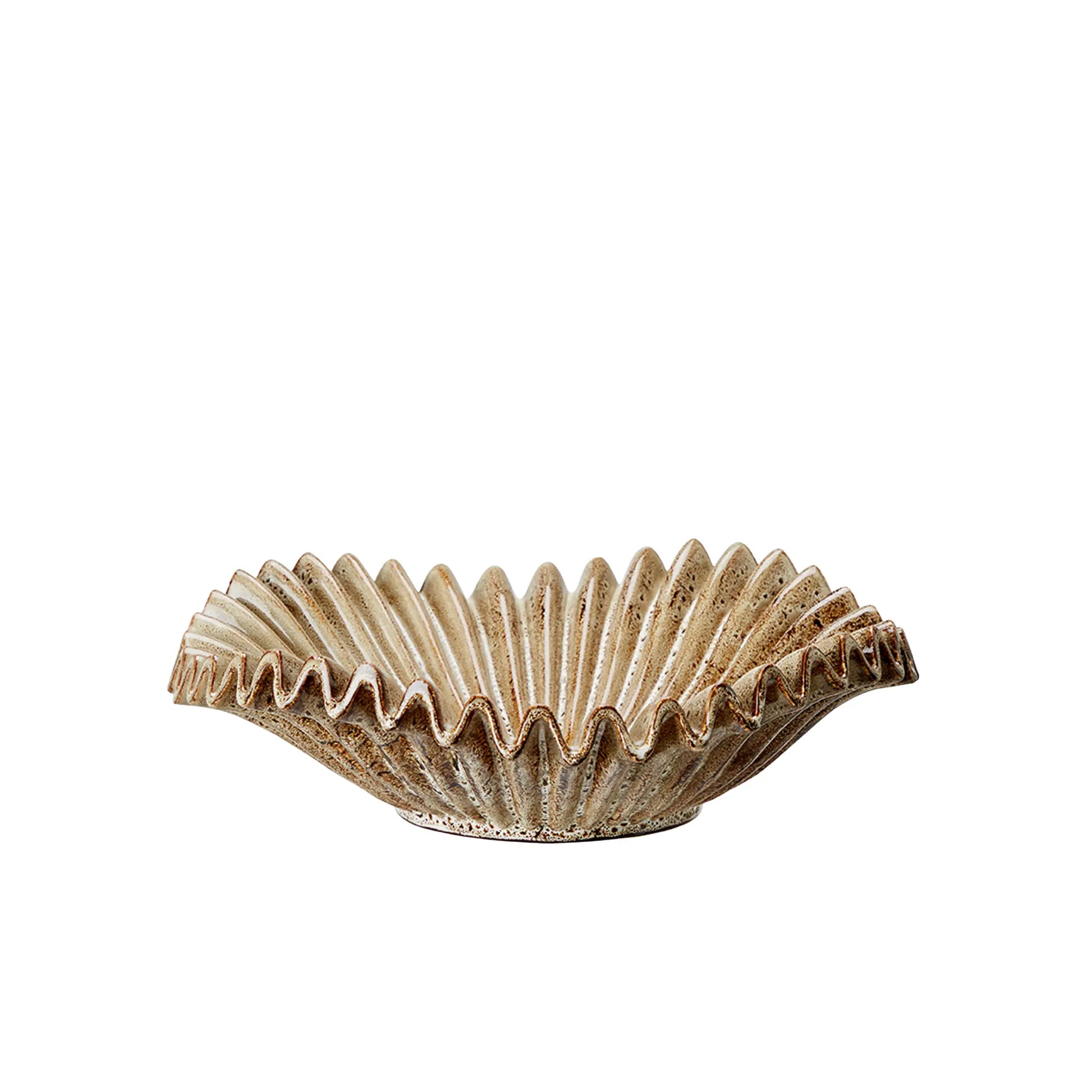 Hanna fat brunmelerad i stengods är ett dekorativt fat med vacker veckad form och rustik glasyr som ger ett levande uttryck. Den skulpturala designen gör det perfekt för frukt, servering eller som blickfång i rummet. En elegant detalj med hantverkskänsla.