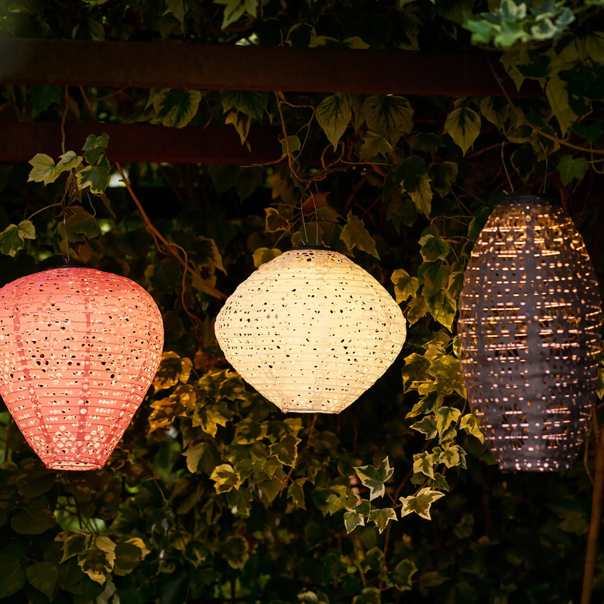 House Nordic, Harwood LED Lykta i vitt är en elegant och dekorativ solcellslykta som kombinerar lätthet och stil i ett harmoniskt formspråk. Den är tillverkad i polyester och stål med en vacker veckad struktur som låter ljuset sila fram genom de små utskärningarna och skapa ett mjukt, levande sken. Lykten är utrustad med amorf solpanel som laddas med dagsljus, vilket gör den enkel att använda utan sladdar. Perfekt för att ge altanen, balkongen eller trädgården en inbjudande och stämningsfull känsla under sommarkvällarna.