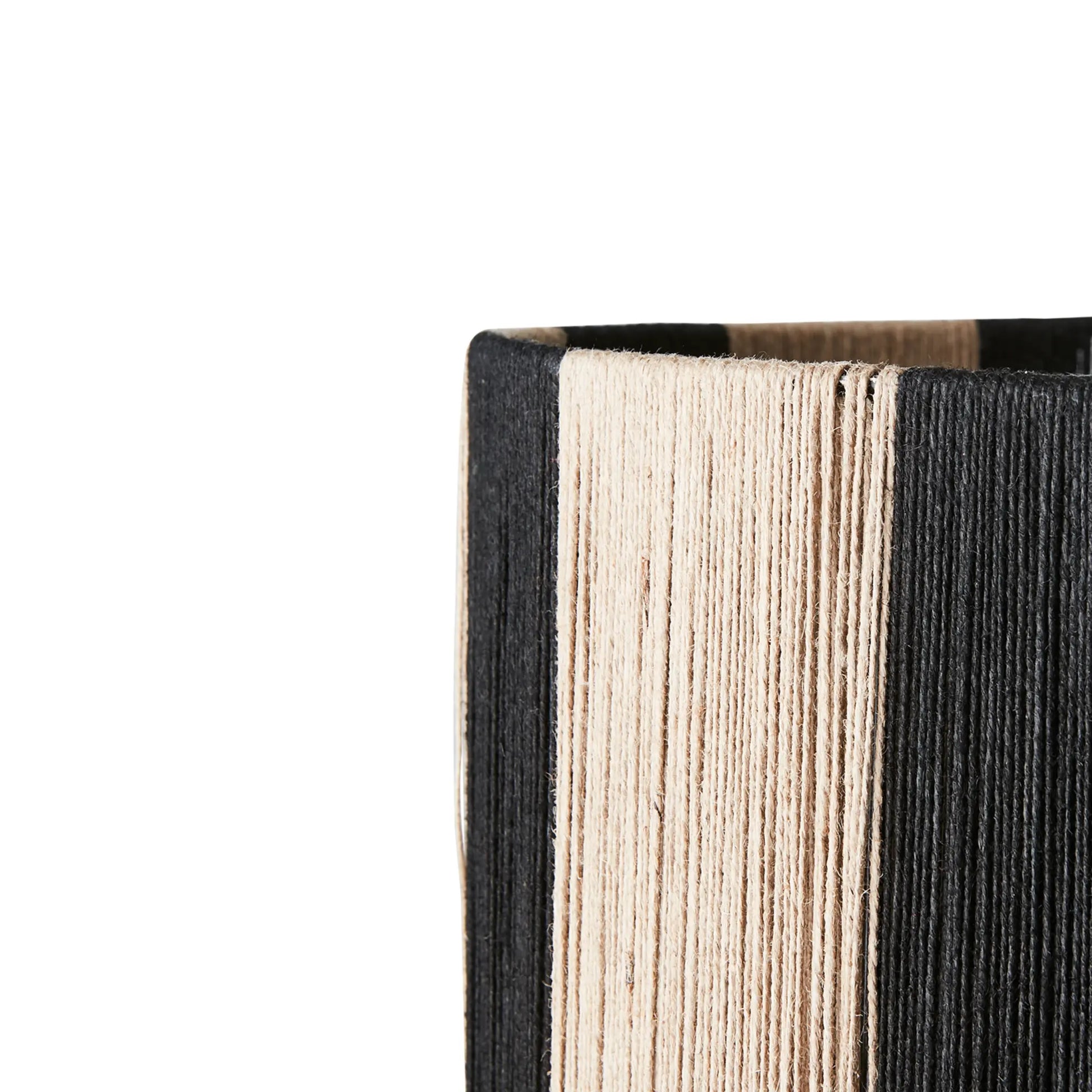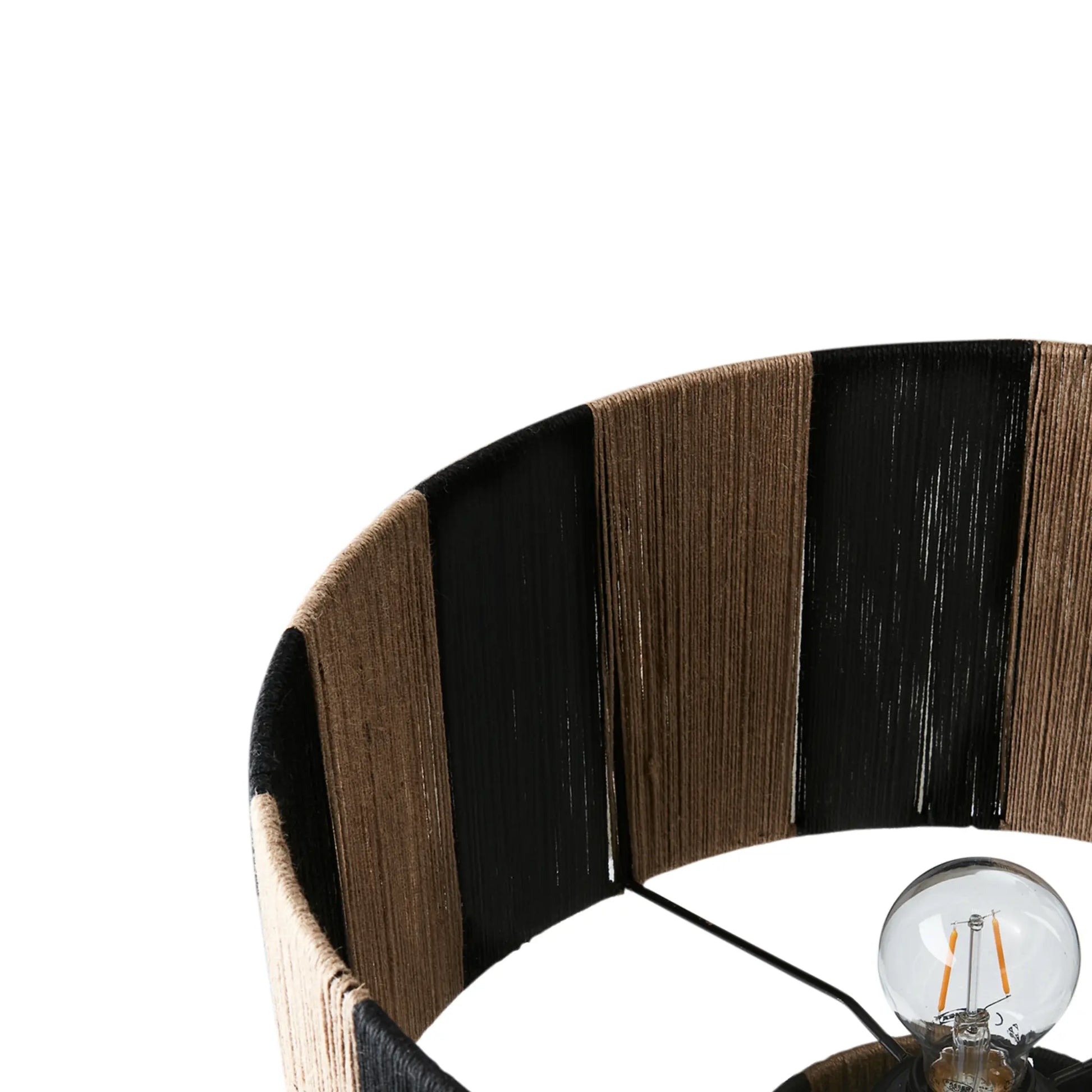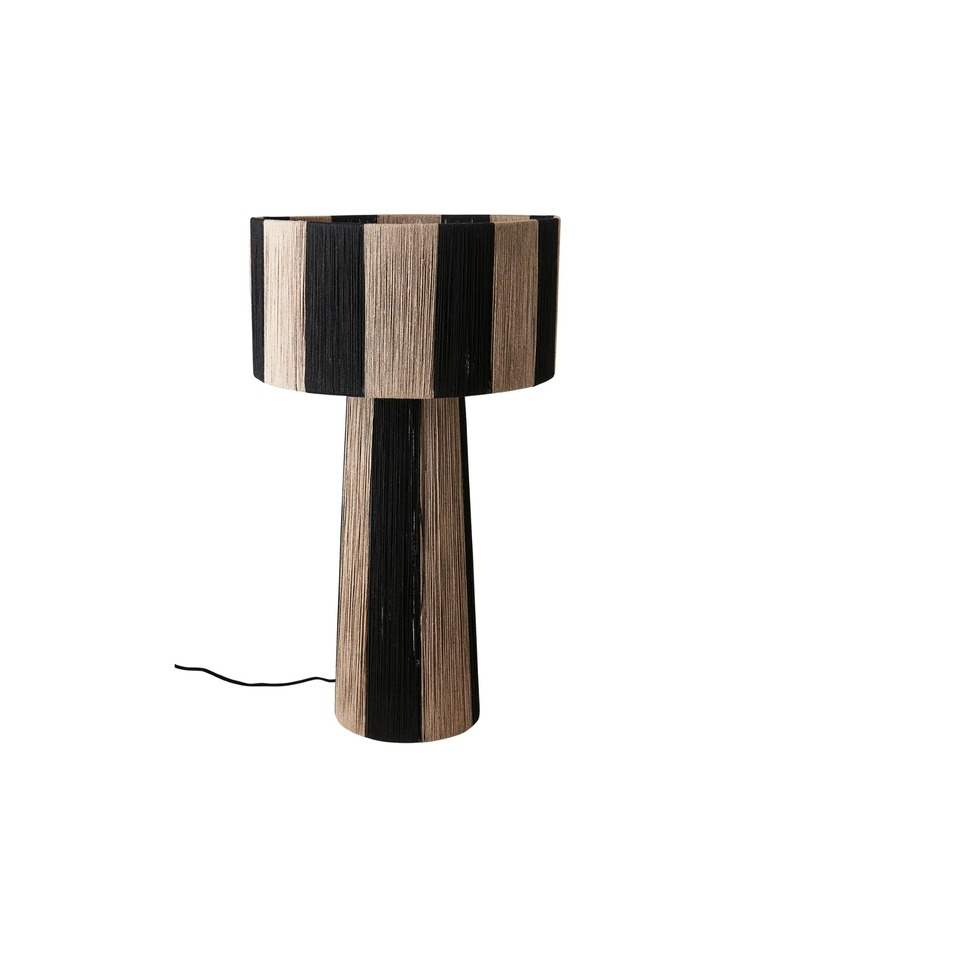 JULLAN bordslampa L svart natur i jute och järn är en dekorativ lampa med randig design som sprider ett varmt och mjukt ljus. De kontrasterande färgerna gör den till ett stilfullt blickfång som passar både i vardagsrum, hall och sovrum. En tidlös inredningsdetalj som kombinerar lekfull form med elegant uttryck. E27 sockel, EU stickkontakt inkluderad, textilsladd 1,20 m, max 25W.