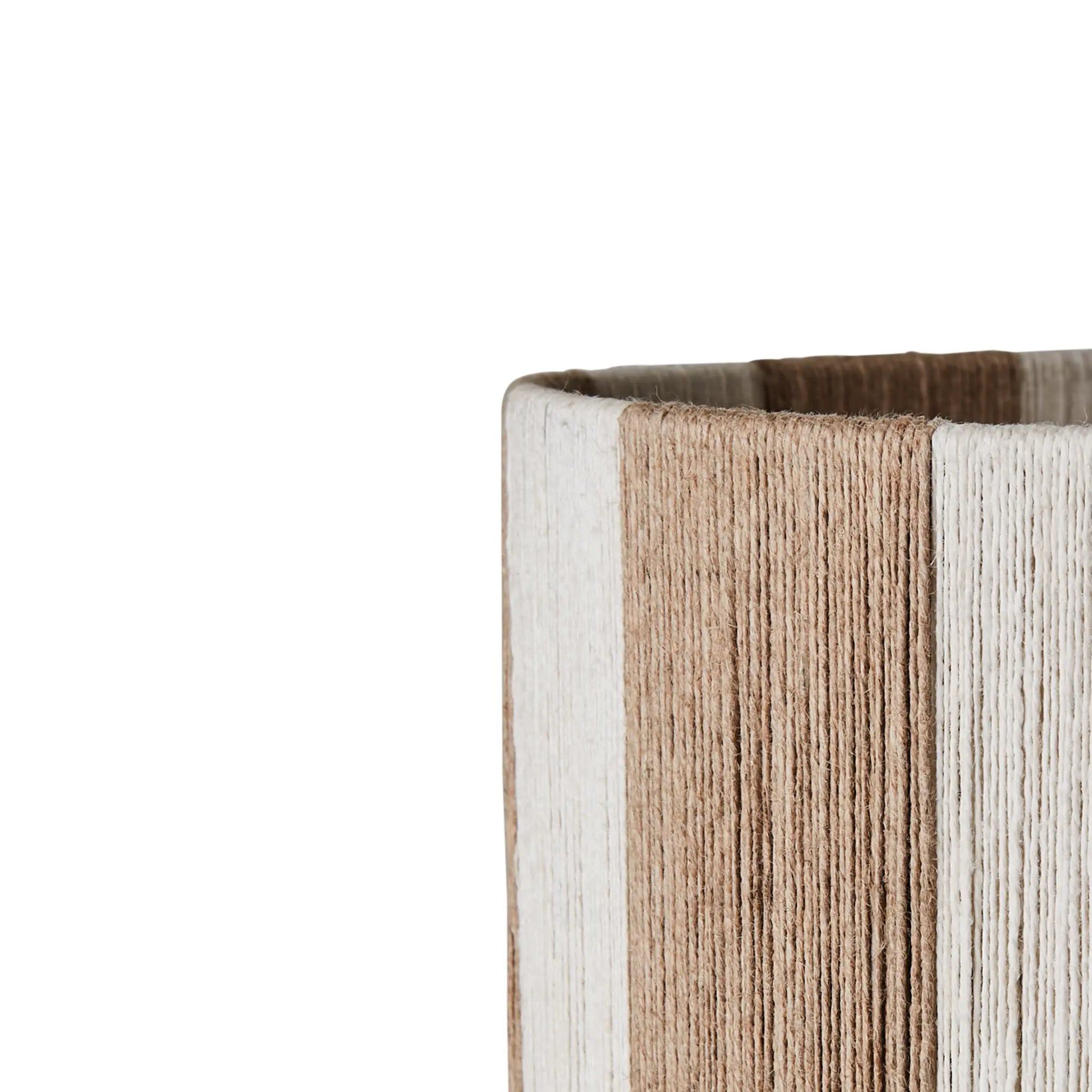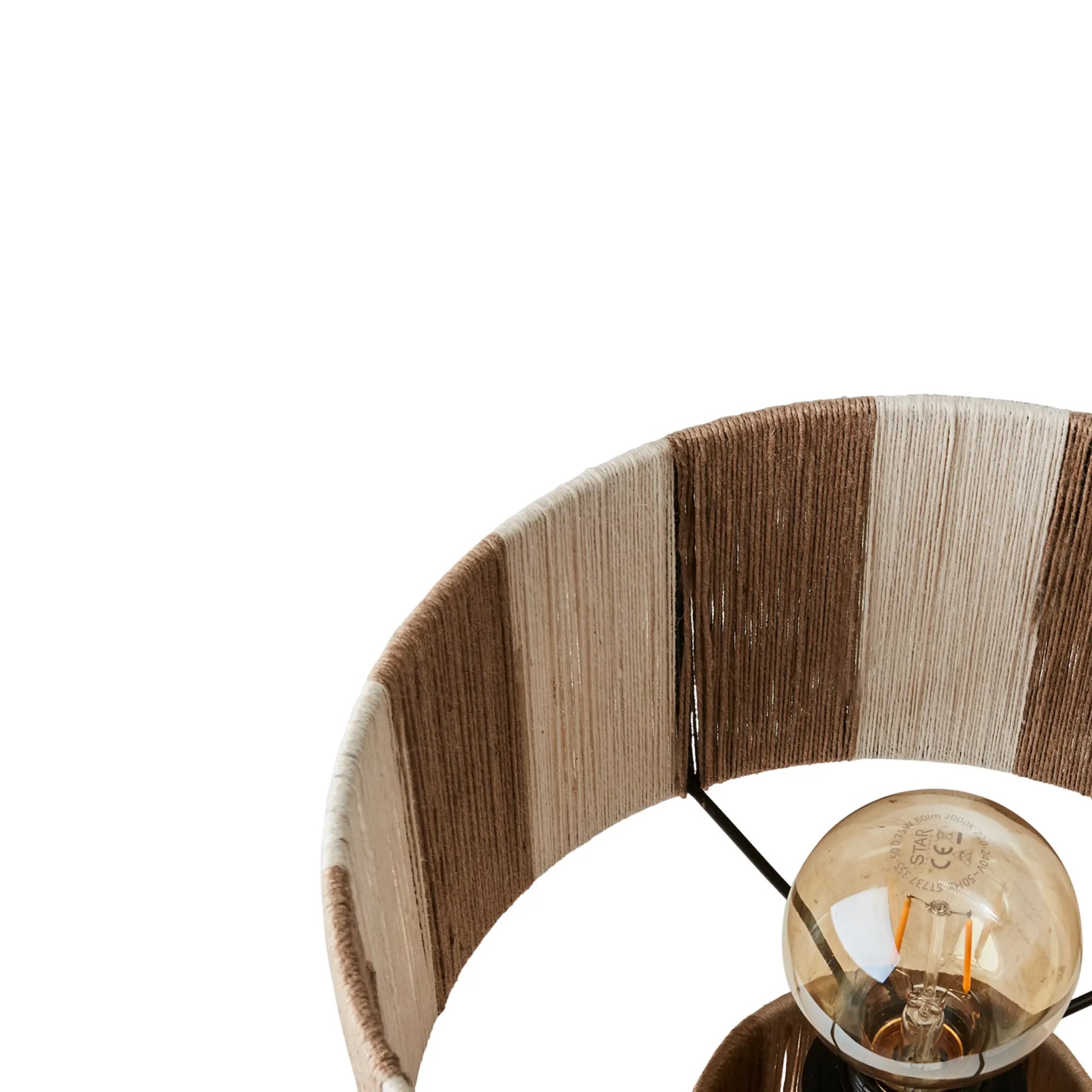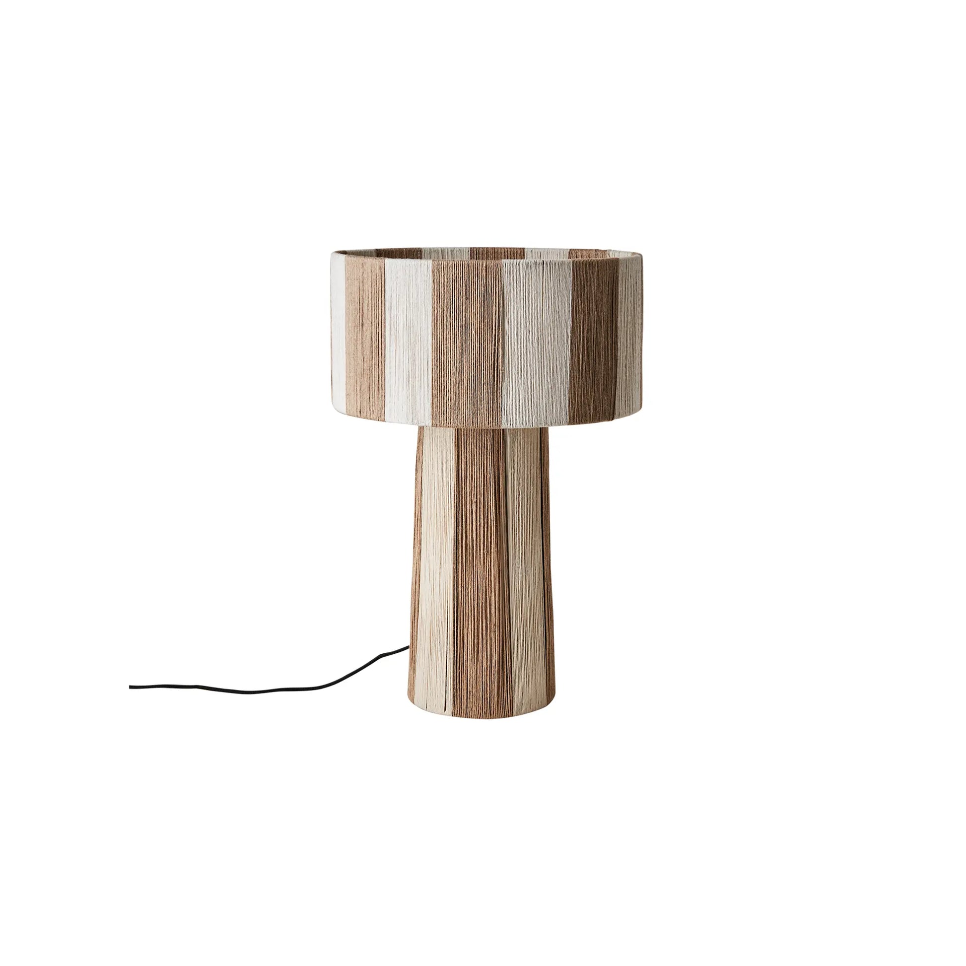 JULLAN bordslampa M elfenben natur i jute och järn är en stilfull lampa med randig design som sprider ett mjukt och varmt sken. De naturliga färgtonerna gör den till ett harmoniskt blickfång som passar lika bra i vardagsrum som i hall eller sovrum. En dekorativ detalj som förenar tidlös elegans med lekfull form. E27 sockel, EU stickkontakt inkluderad, textilsladd 2,15 m, max 25W.