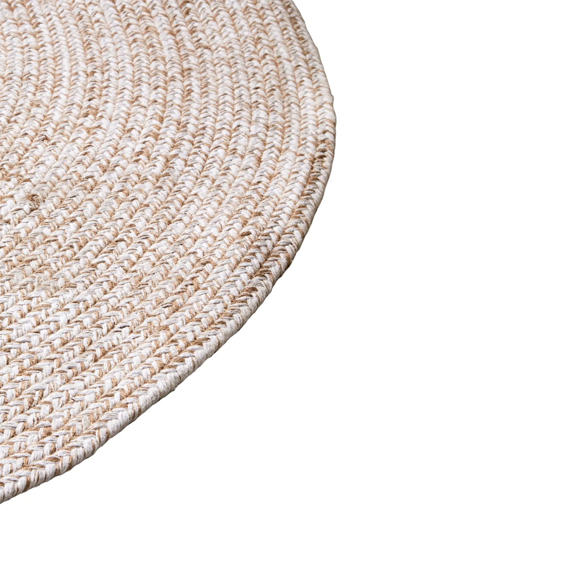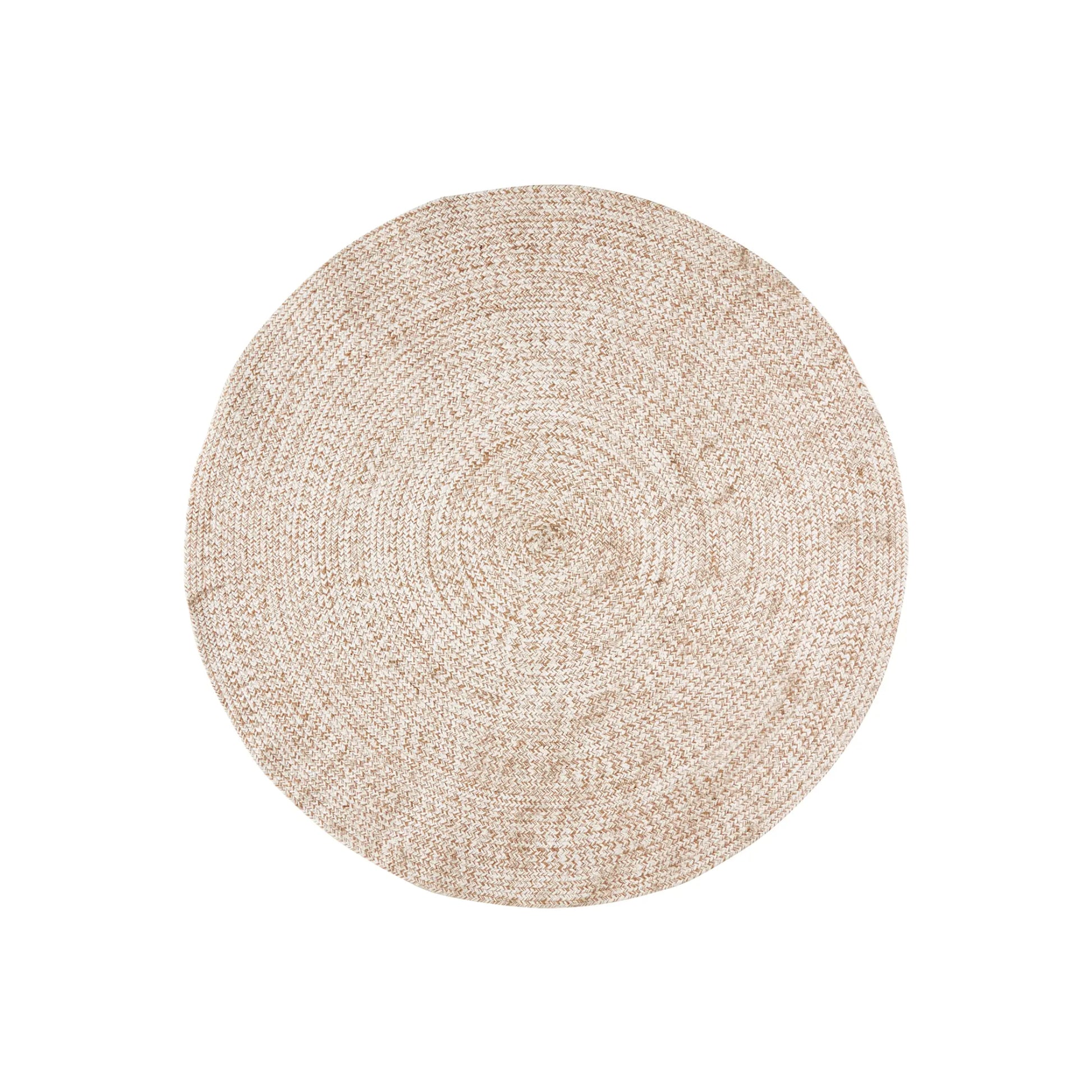 JUNI Matta L natur vit är en rund matta som förenar enkelhet med naturlig elegans. Den är tillverkad i jute och bomull vilket ger en slitstark struktur och en mjuk känsla under fötterna. Den ljusa färgskalan i natur och vitt gör mattan lätt att placera i olika rum och bidrar till en harmonisk atmosfär. Endast fläckbehandling rekommenderas för att bevara dess naturliga skönhet och hållbarhet över tid.