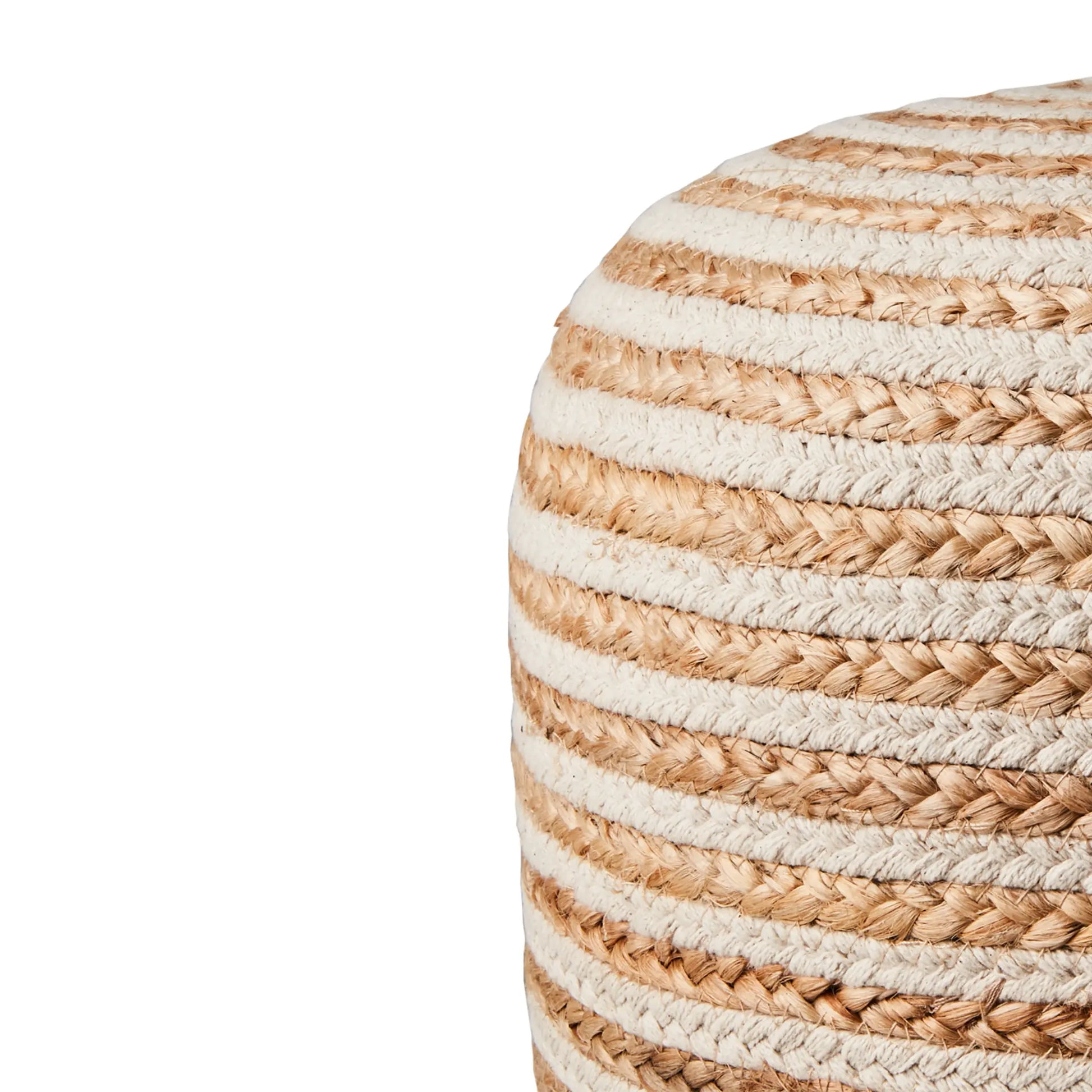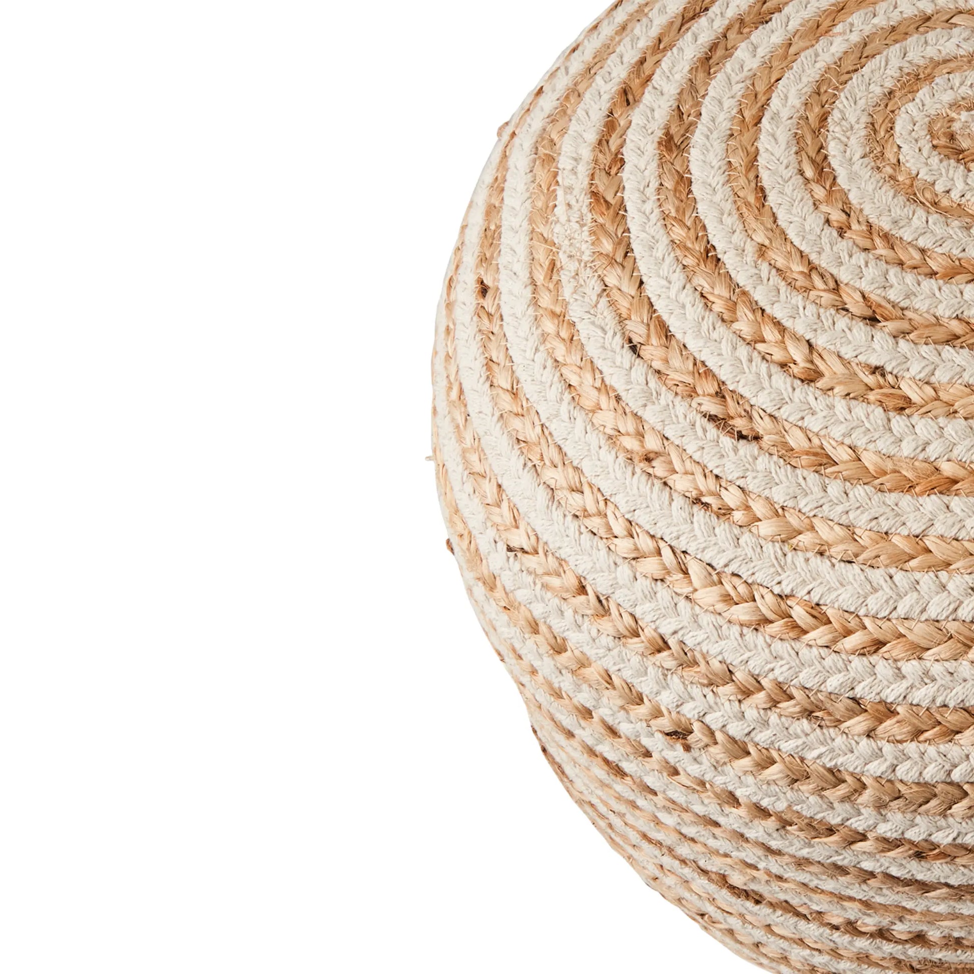 JUNI sittpuff natur elfenben är en handvävd puff i bomull och jute med fyllning av polystyrenkulor som ger en bekväm och stadig form. De naturliga tonerna i kombination med de ljusa ränderna skapar ett harmoniskt uttryck som passar lika bra i vardagsrummet som i sovrummet eller hallen. En mångsidig inredningsdetalj som fungerar både som extra sittplats, fotpall eller dekorativ accent. Tvättråd: endast fläckbehandling för att bevara materialets kvalitet och utseende.