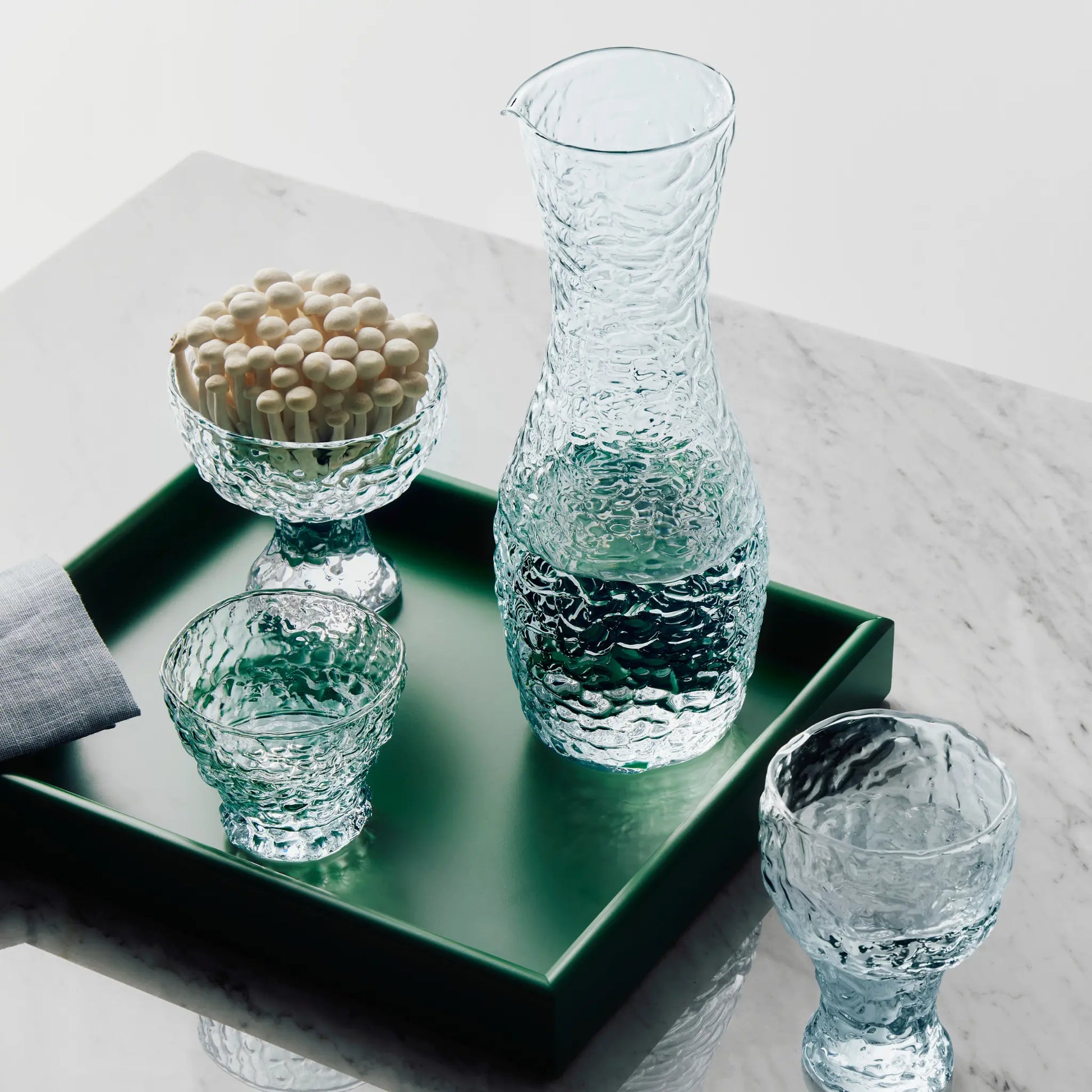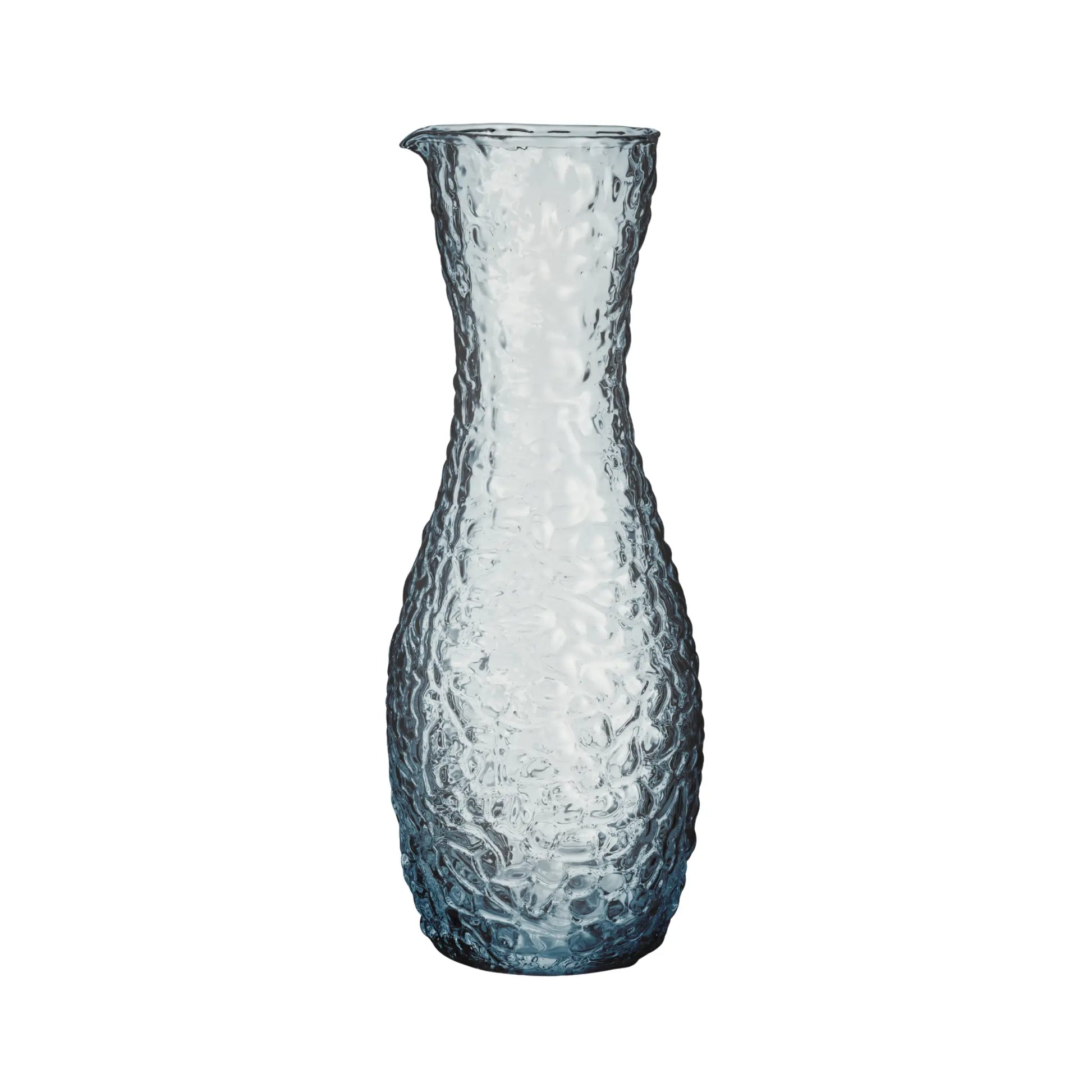 Moss karaff cirkulär 142 cl från Kosta Boda är en handgjord karaff i munblåst blyfri kristall, formgiven av Åsa Jungnelius och tillverkad vid Kosta Glasbruk. Karaffen har en levande, handkarvad struktur som reflekterar ljuset på ett elegant sätt och framhäver glasets naturliga skiftningar. Den är tillverkad i cirkulärt glas där återvunnet glaskross används, vilket gör varje exemplar unikt i ton och form. Perfekt för att servera vatten, saft eller vin och bör diskas varsamt.