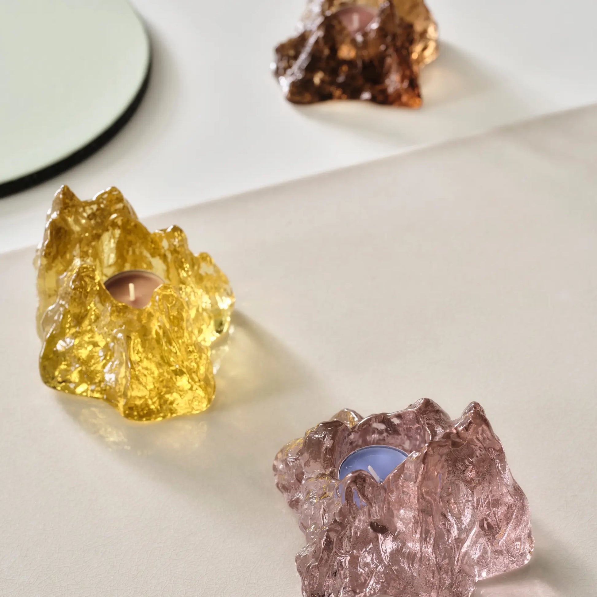 The Rock Ljuslykta i färgen Gul 91 mm från Kosta Boda är en livfull och elegant ljuslykta formgiven av Hanna Hansdotter. Den är tillverkad i kristallglas och har en skulptural form med dramatiska linjer som fångar ljuset på ett vackert sätt. Den gyllene tonen skapar en varm och stämningsfull glöd när ljuset tänds, samtidigt som den ikoniska designen ger ett modernt uttryck. En hyllning till Kosta Bodas klassiska glasarv och svenskt hantverk.
