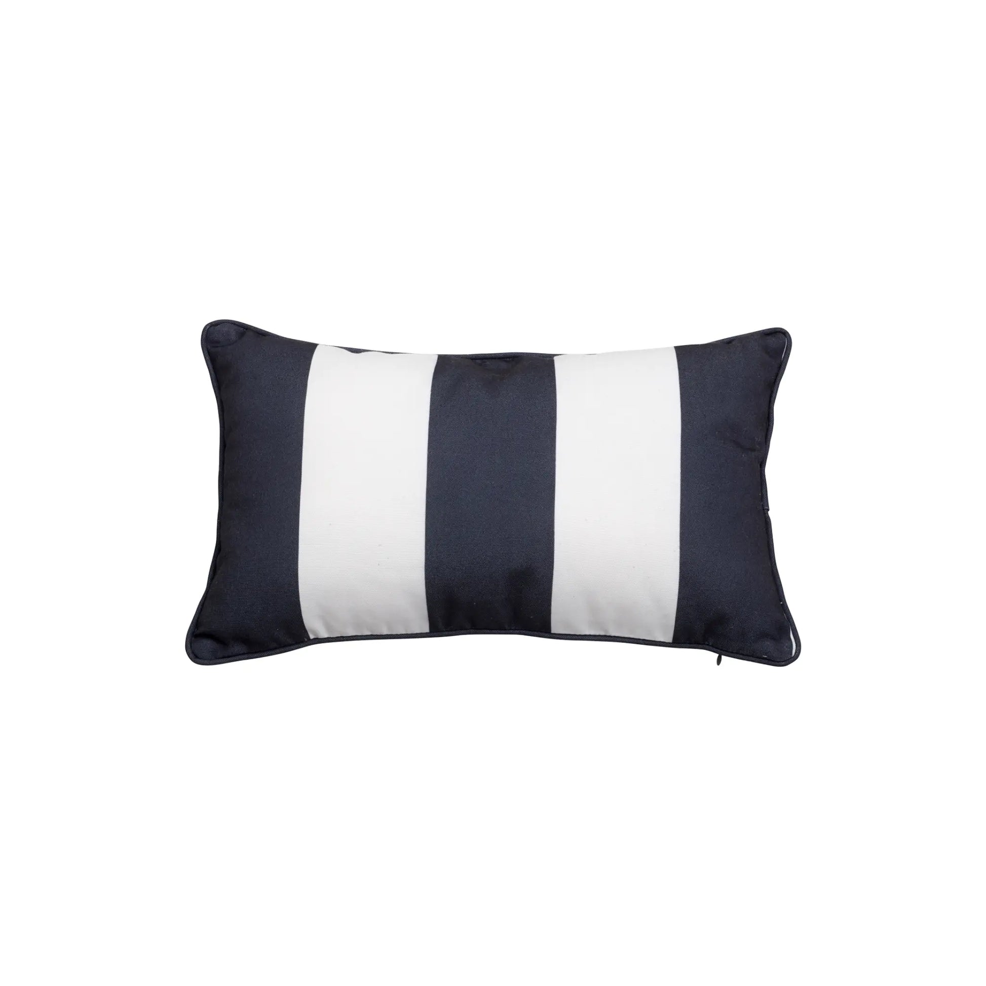 Mogihome, Sunny Kuddfodral, Svart/Vit är en stilfull och slitstark utomhuskudde i 100 procent polyester med breda ränder i kontrasterande nyanser. Kudden är framtagen för att tåla både sol och lätt regn och torkar snabbt efter fukt, vilket gör den perfekt för uteplats, altan eller balkong. Den klassiska marina designen skapar en tidlös och elegant känsla som lyfter hela sittgruppen. Materialet är både bekvämt och praktiskt, och kudden behåller sin form och färg även vid flitig användning. Endast fläcktvätt rekommenderas för lång hållbarhet och fräsch finish.