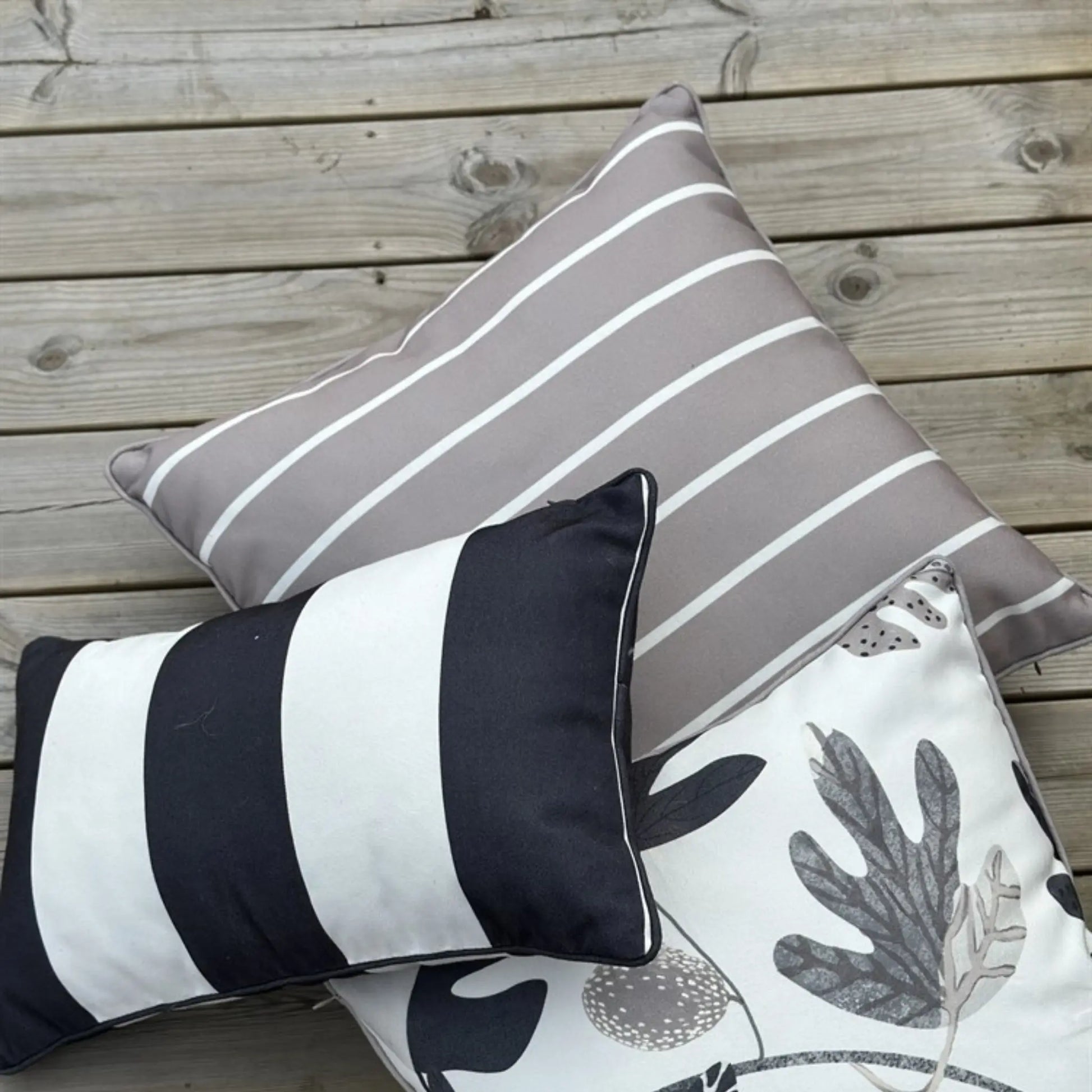 Mogihome, Sunny Kudde, Beige/Vit är en stilren utomhuskudde i 100 procent polyester med tryckt randigt mönster. Kudden är både tålig och snabbtorkande, perfekt för altanen, uterummet eller trädgården. Den behåller sin fräschör även efter en regnskur och torkar snabbt i solen. Fylld och färdig att använda för enkel komfort utomhus. Endast fläcktvätt.
