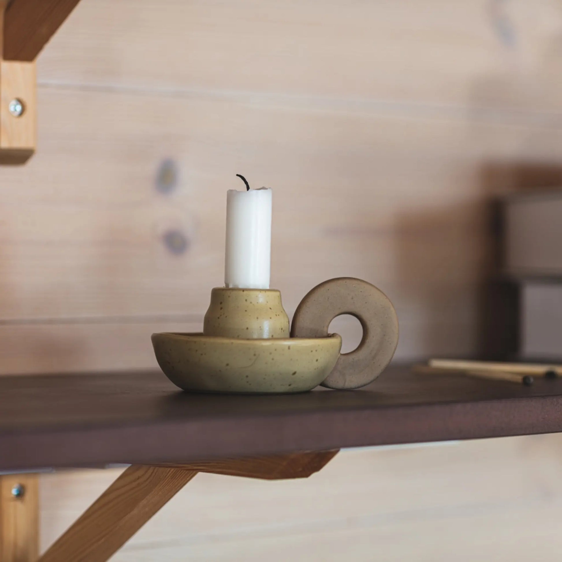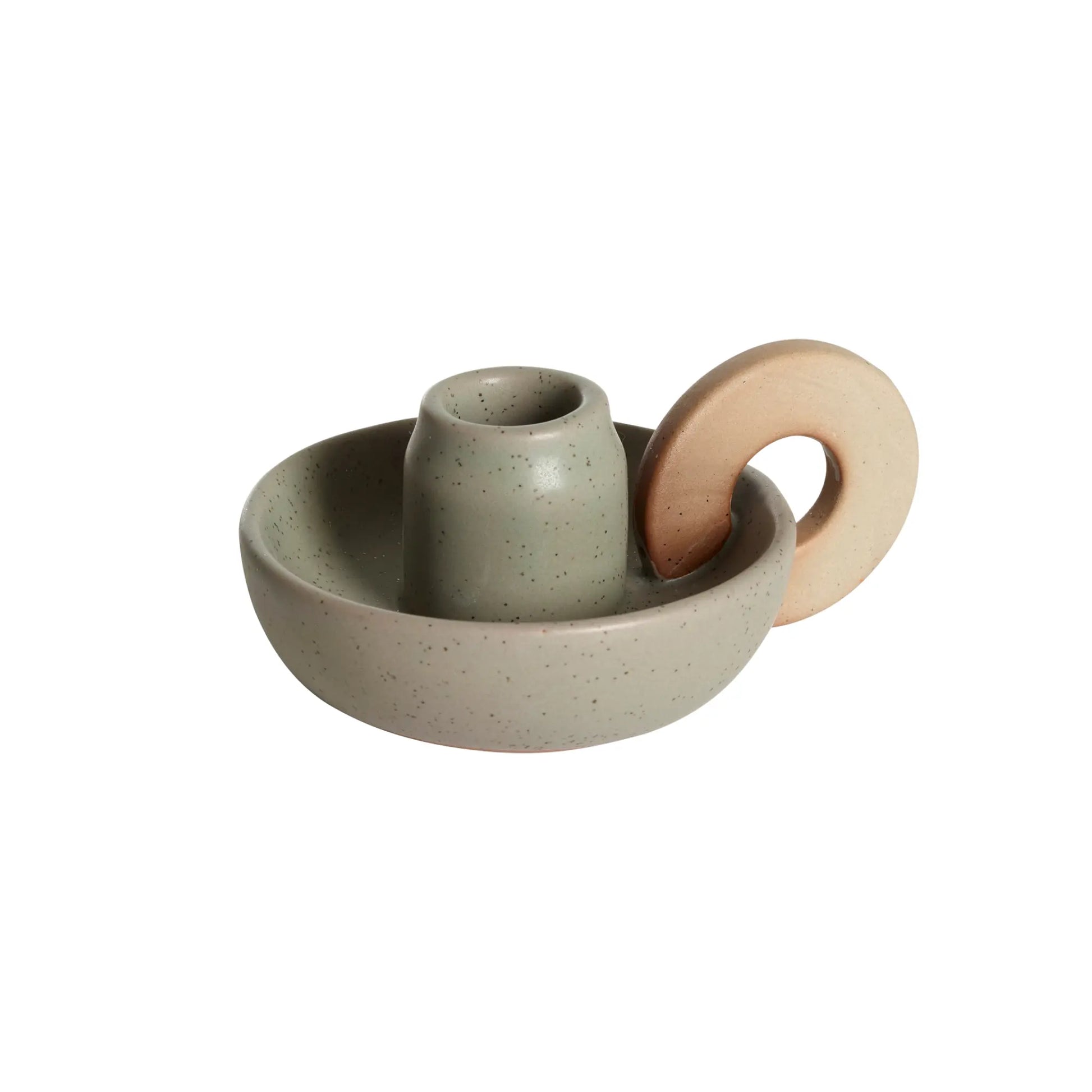 Lottis Ljusstake i färgen grön är en charmig och lekfull ljusstake i keramik med mjuka former och ett dekorativt handtag. Den dova gröna tonen och de naturliga skiftningarna i glasyren ger ett harmoniskt och jordnära uttryck. Ljusstaken passar perfekt för kronljus och blir ett fint inslag på matbordet, i fönstret eller på en hylla. Den tidlösa designen gör att den enkelt kan kombineras med andra färger i serien för en enhetlig men levande känsla i hemmet.