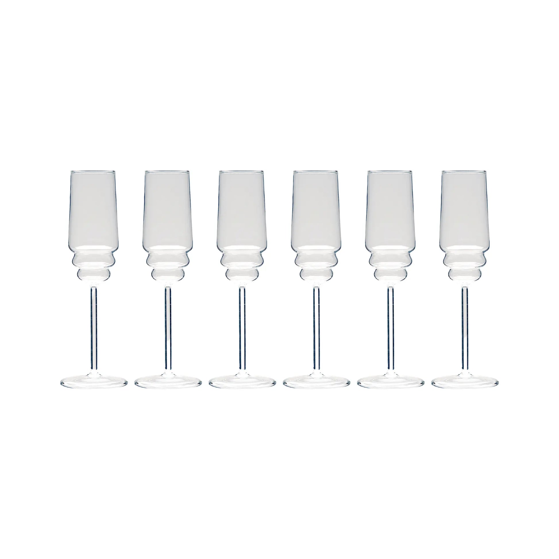 Steps champangeglas 45 cl i borosilikatglas är ett stilrent och modernt glas med ett balanserat och tidlöst uttryck. Den slanka formen är framtagen för att bevara dryckens fräschör och ge en elegant servering vid både vardagliga och festliga tillfällen. Det lätta men tåliga borosilikatglaset ger en behaglig känsla i handen och hög hållbarhet vid användning. Varje glas är handgjort vilket ger små variationer och ett levande, genuint intryck. Glasen passar för servering av kylda drycker och bidrar till en stilren dukning. Levereras i set om sex glas med en volym på 45 cl och tål diskmaskin.
