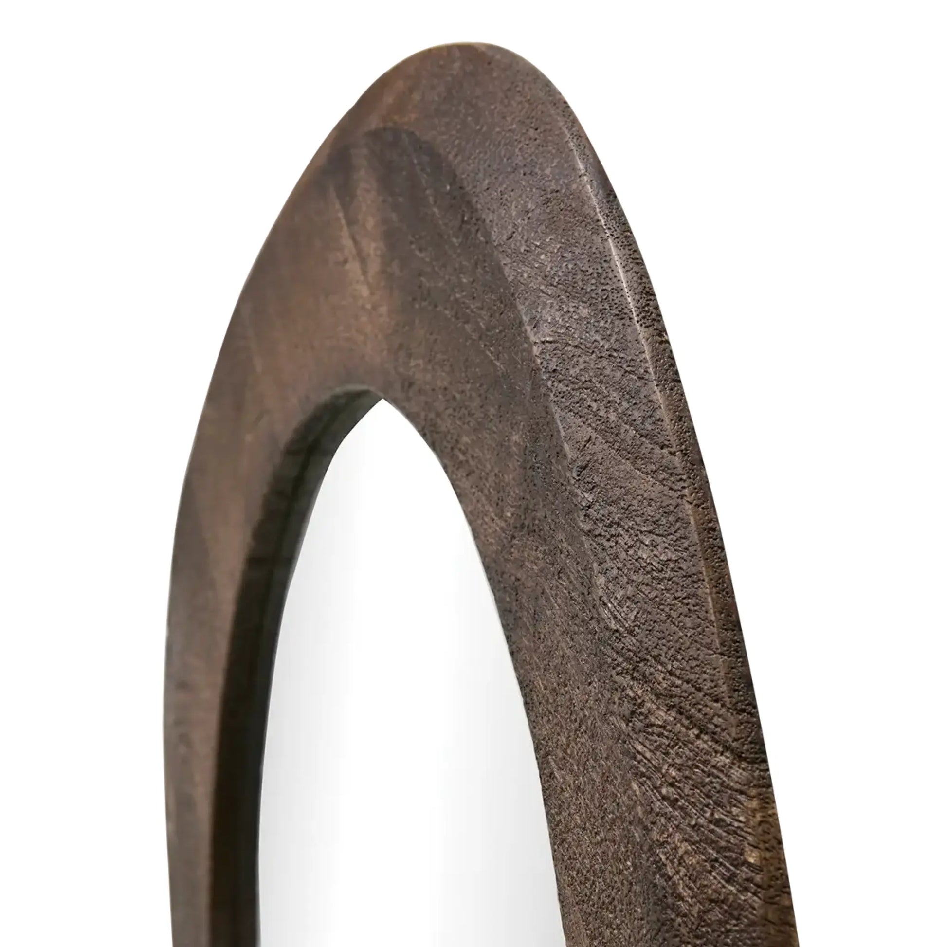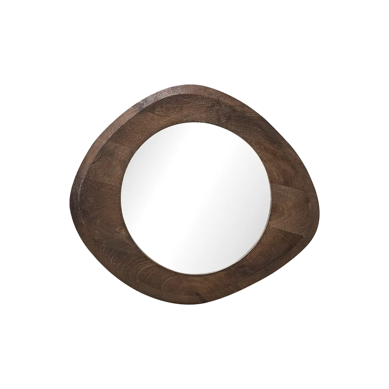 PORTLAND spegel i brun mangoträ är en unik och stilfull inredningsdetalj som ger rummet en varm och naturlig känsla. Den organiska formen på ramen skapar ett mjukt och modernt uttryck, samtidigt som det rika träslaget ger en tidlös karaktär. Spegelglaset omges av en gedigen ram som framhäver hantverket och gör spegeln till ett vackert blickfång på väggen. Perfekt för att addera både funktion och dekorativ elegans i hemmet.