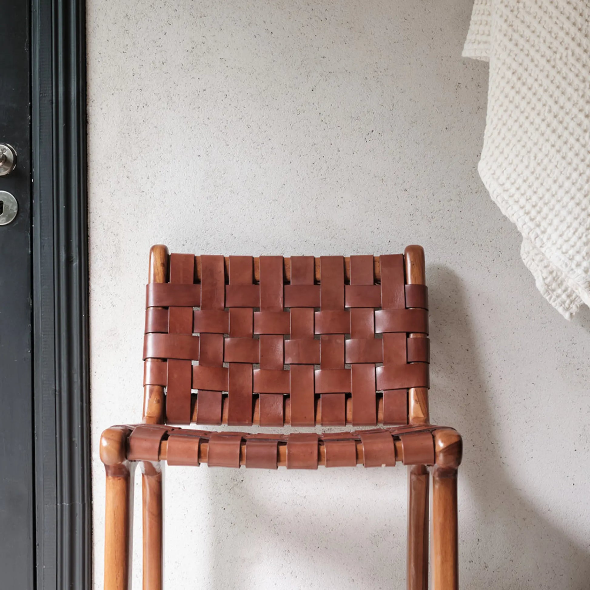 Porto barstol i färgen konjak är en elegant och tidlös stol som kombinerar teakens varma ton med flätat läder i klassisk design. Den stadiga konstruktionen och den bekväma sitsen gör den perfekt för både köksö och barbord. En stilfull möbel som tillför både karaktär och naturlig charm till rummet.