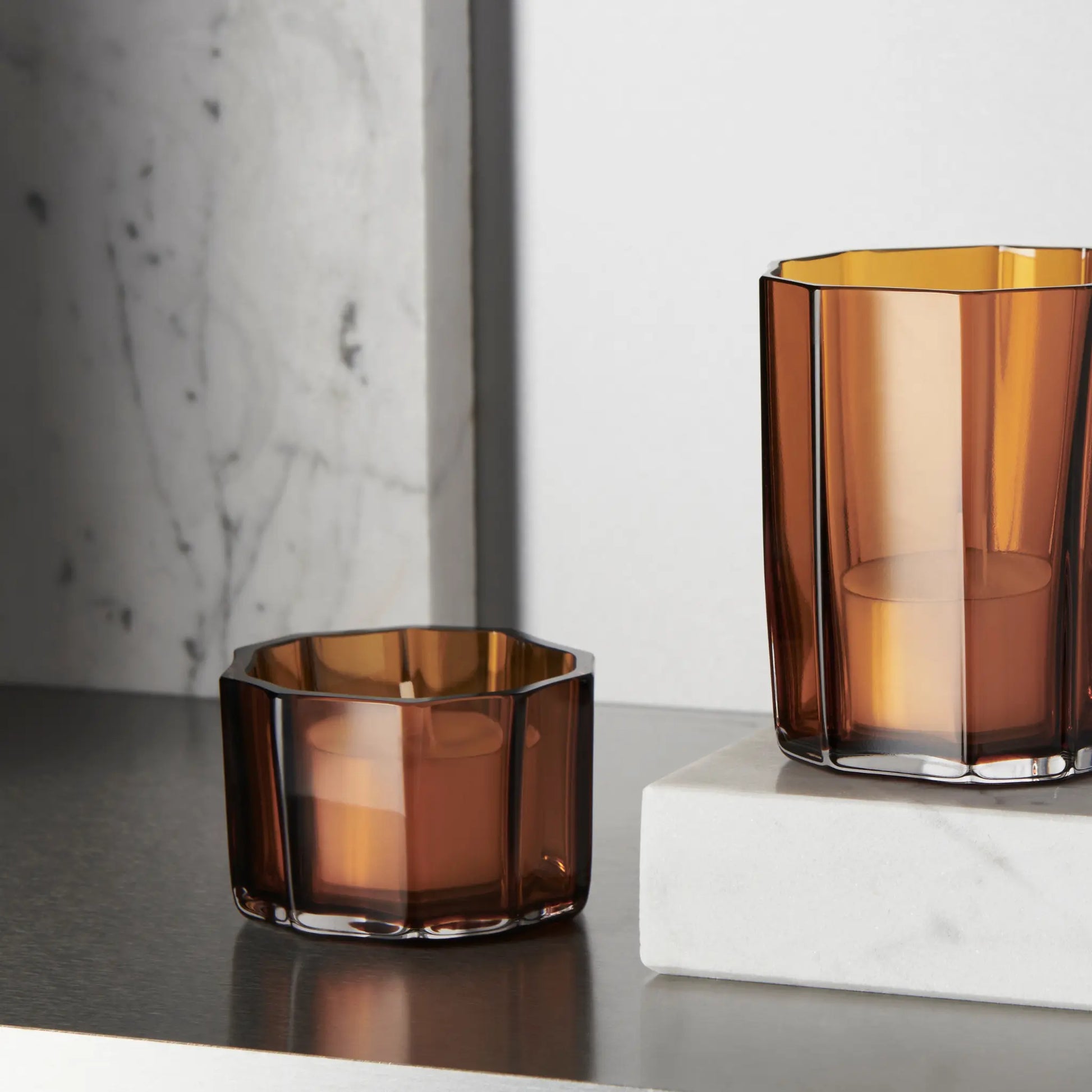 Orrefors Reed ljuslykta bärnsten 45mm är en liten och elegant glaslykta designad av Monica Förster för Orrefors. Den är munblåst i bärnstensfärgat glas med mjuka, organiska former som ger ett varmt och levande ljusspel. Den djupa färgtonen skapar en inbjudande känsla och förhöjer stämningen i varje rum. Perfekt för värmeljus och vacker att kombinera med andra lyktor i Reed-serien för en harmonisk helhet.