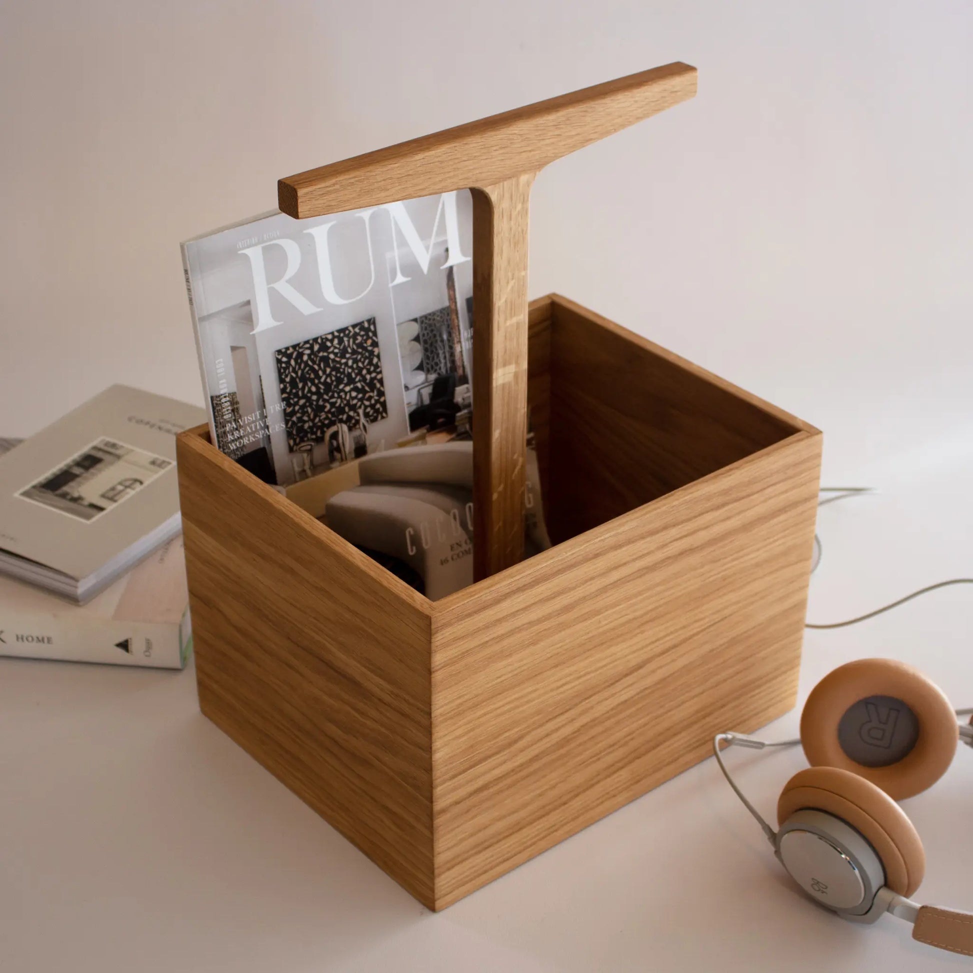 Ro Collection Toolbox high i ek är en stilren och funktionell förvaringslösning som kombinerar hantverk med modern design. Tillverkad i oljad ek med ett naturligt uttryck som framhäver träets vackra ådring. Den praktiska T-formade handtaget gör den enkel att flytta och passar perfekt för köksredskap, kontorsdetaljer eller kreativa verktyg. En tidlös inredningsdetalj som förenar estetik och funktion i vardagen.