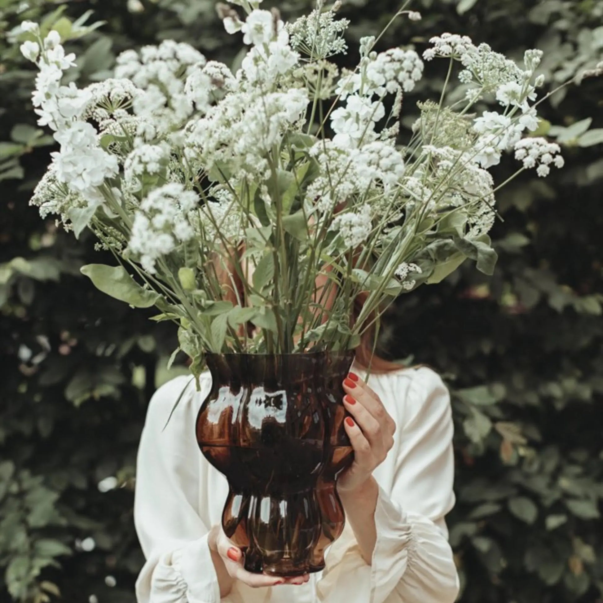 Mogihome vas bruno brun är en elegant glasvas med mjukt bubblig form som ger ett modernt och levande uttryck. Den bruna tonen skapar en varm och sofistikerad känsla som framhäver både enkla kvistar och frodiga buketter. Den skulpturala designen gör vasen lika vacker med som utan blommor. Tillverkad i glas med glansig yta som fångar ljuset på ett stilfullt sätt. En tidlös inredningsdetalj för både vardagsrum och matbord.