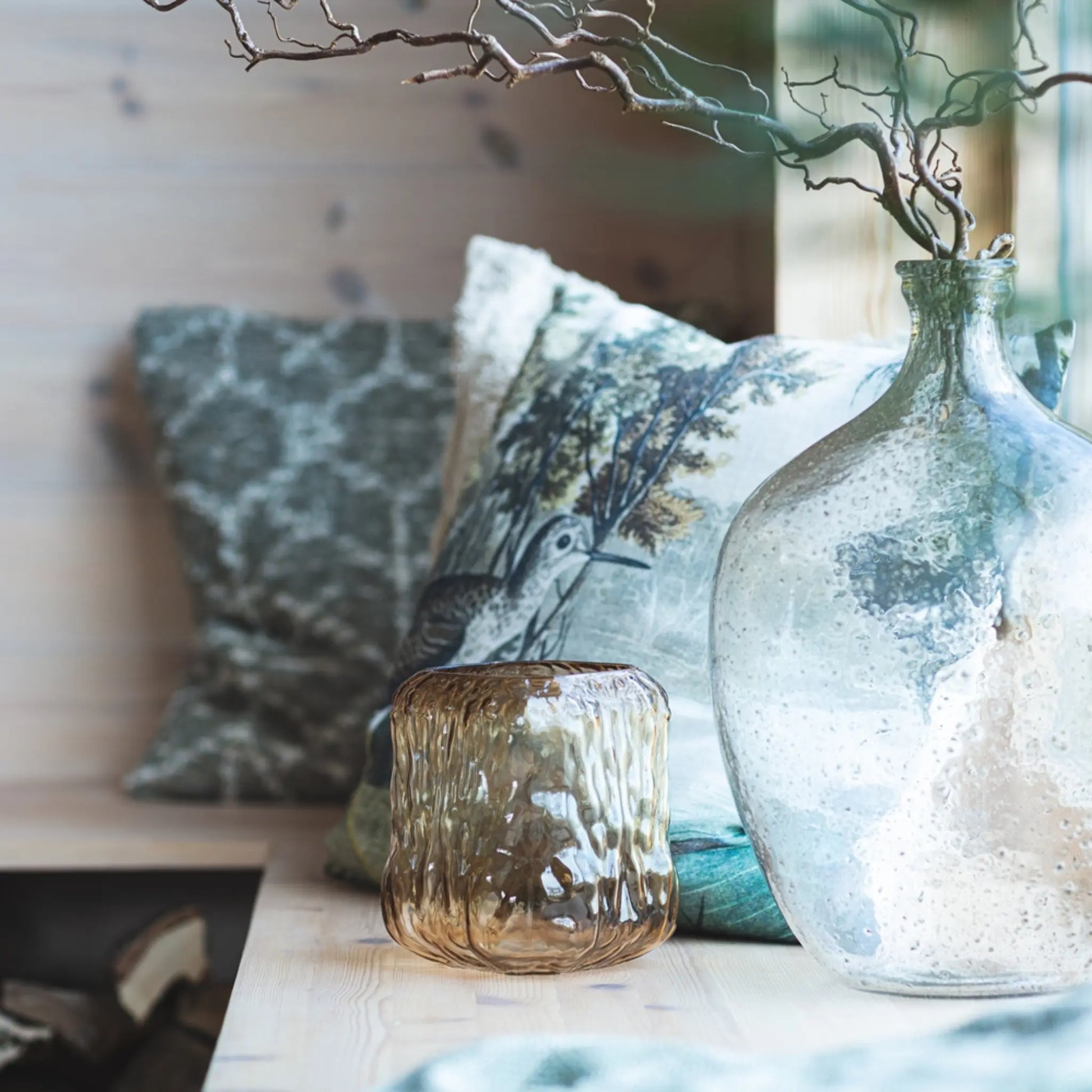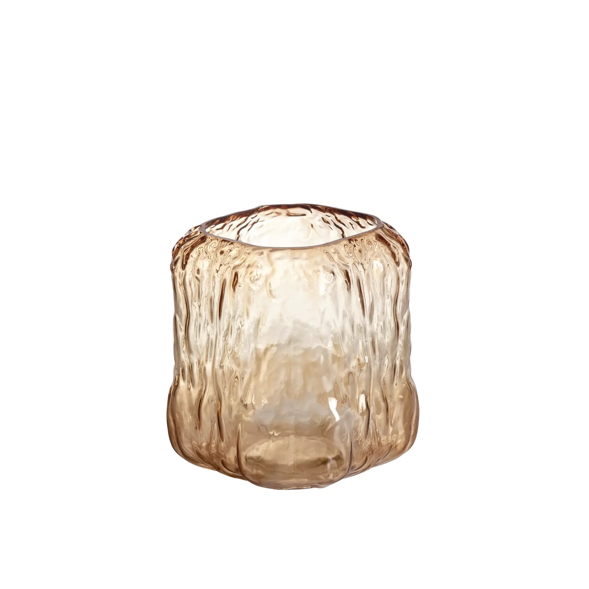 Mogihome, Heli Vas/Ljuslykta, Brun är en elegant glasvas med en unik retroinspirerad form som för tankarna till klassiskt handblåst glas. Den mjukt veckade ytan fångar ljuset på ett vackert sätt och skapar ett levande sken när den används som ljuslykta. Den varma bruna tonen ger ett harmoniskt intryck och gör att den passar lika bra i moderna som traditionella hem. En tidlös inredningsdetalj som sprider både värme och karaktär i rummet.