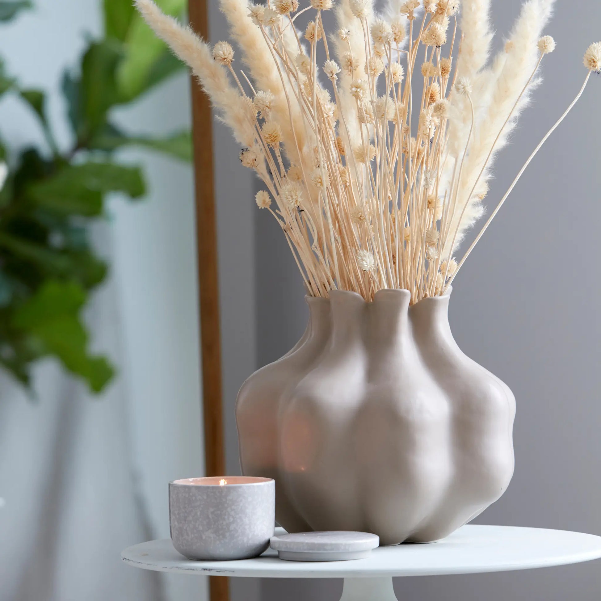 Violet vas i färgen linne är en dekorativ vas i dolomit med mjukt formad siluett som ger ett elegant och organiskt uttryck. Den matta ytan och skulpturala formen gör den lika vacker med som utan blommor. En stilfull detalj som adderar lugn och harmoni till hemmet.